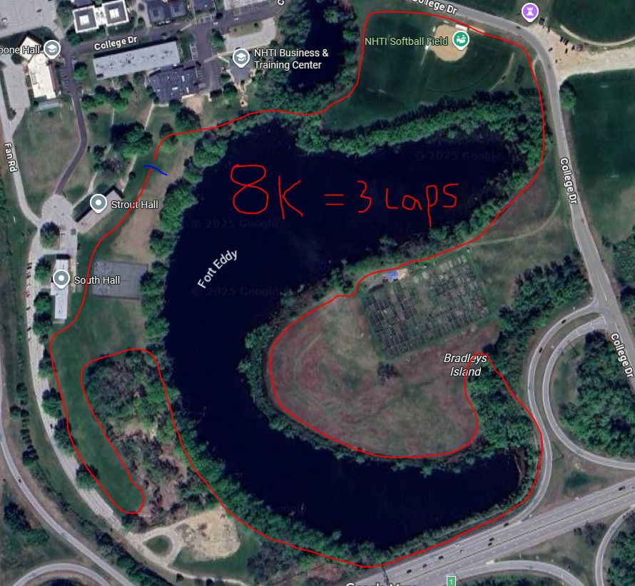 Location of course start/finish area on campus: NHTI's south quad, behind Little Hall, nearby the NHTI XC gazebo